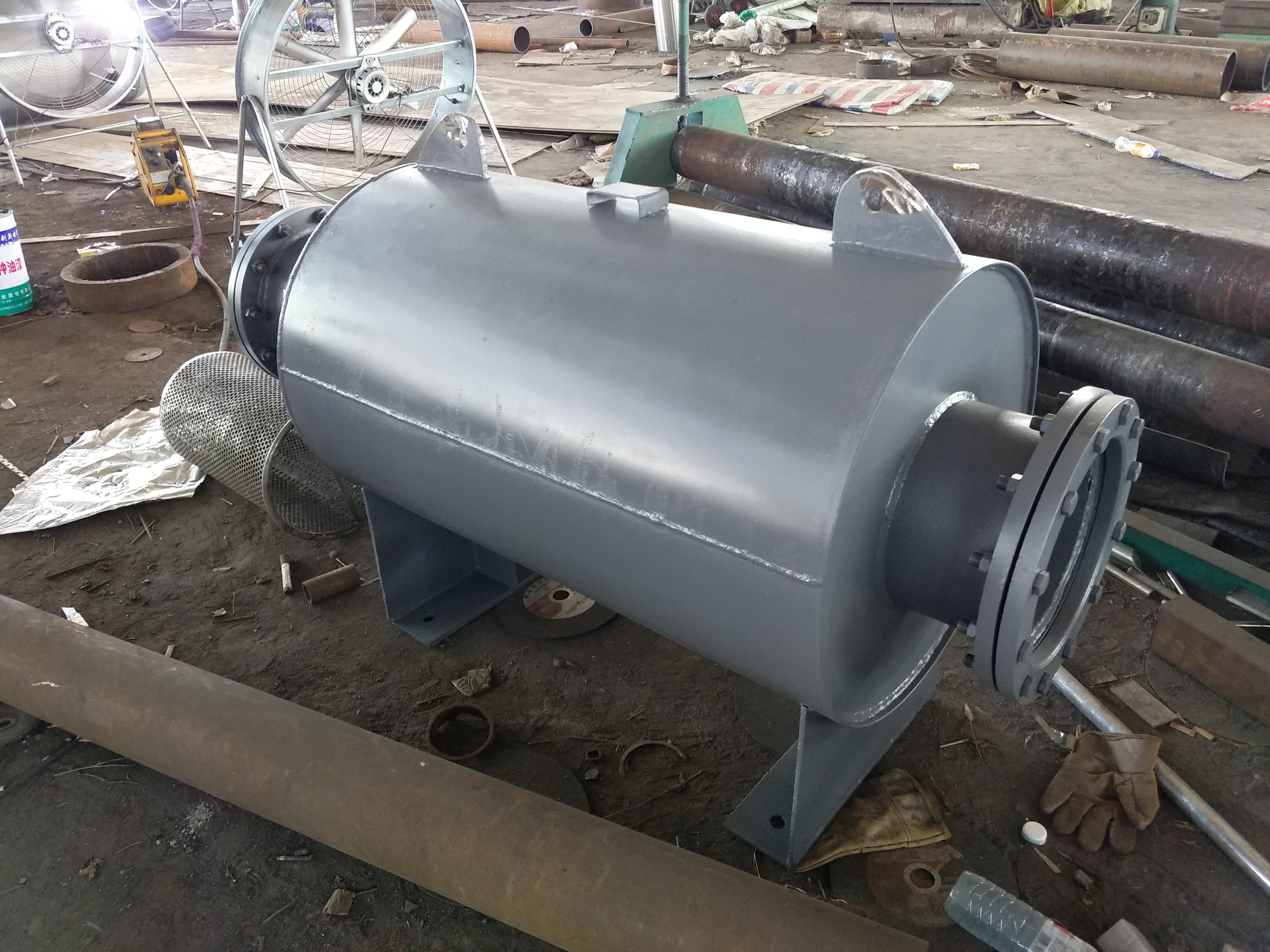 (3)結(jié)構(gòu)可選定小孔式或抗噴阻復(fù)合型。一般用戶選購(gòu)復(fù)合型消聲器,消音遙遙好,材質(zhì)內(nèi)部為不銹鋼,殼體材料為碳鋼;接管可選取焊接或法蘭對(duì)接;支腿可選取腿式或耳式結(jié)構(gòu);