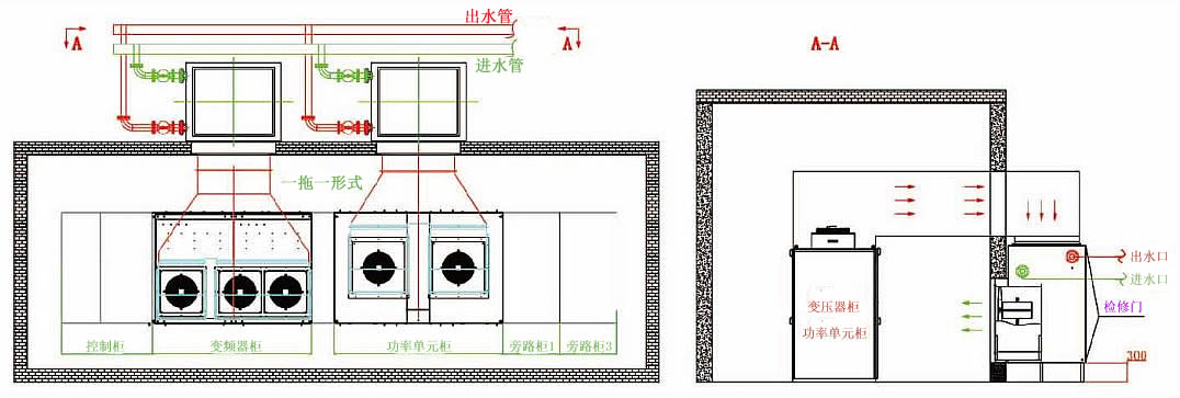 我公司通過變頻器工程應用經驗的積累,針對不同的應用環(huán)境現(xiàn)場提供完整的變頻器冷卻系統(tǒng)裝置一方案。-用的幾種冷卻方式主要包括:(1)風道開放式冷卻,(2)空調-閉冷卻,(3)空水冷-閉冷卻,(4)設備本體水冷卻,(5)上述方式組合式冷卻。