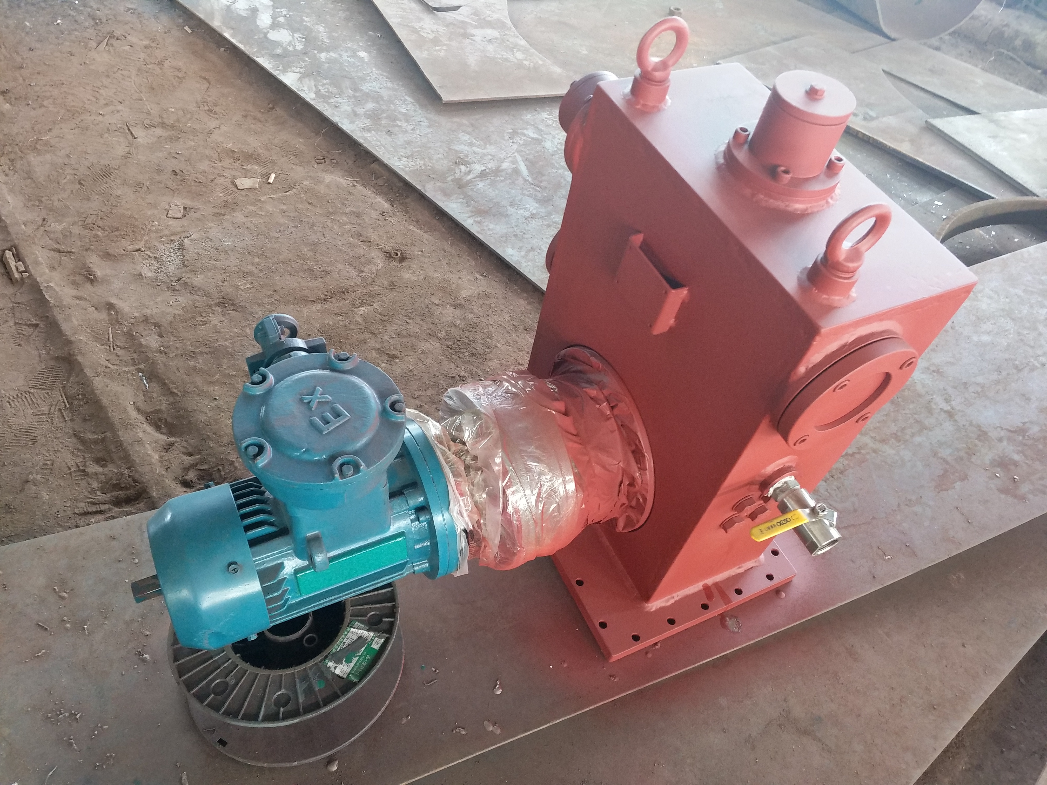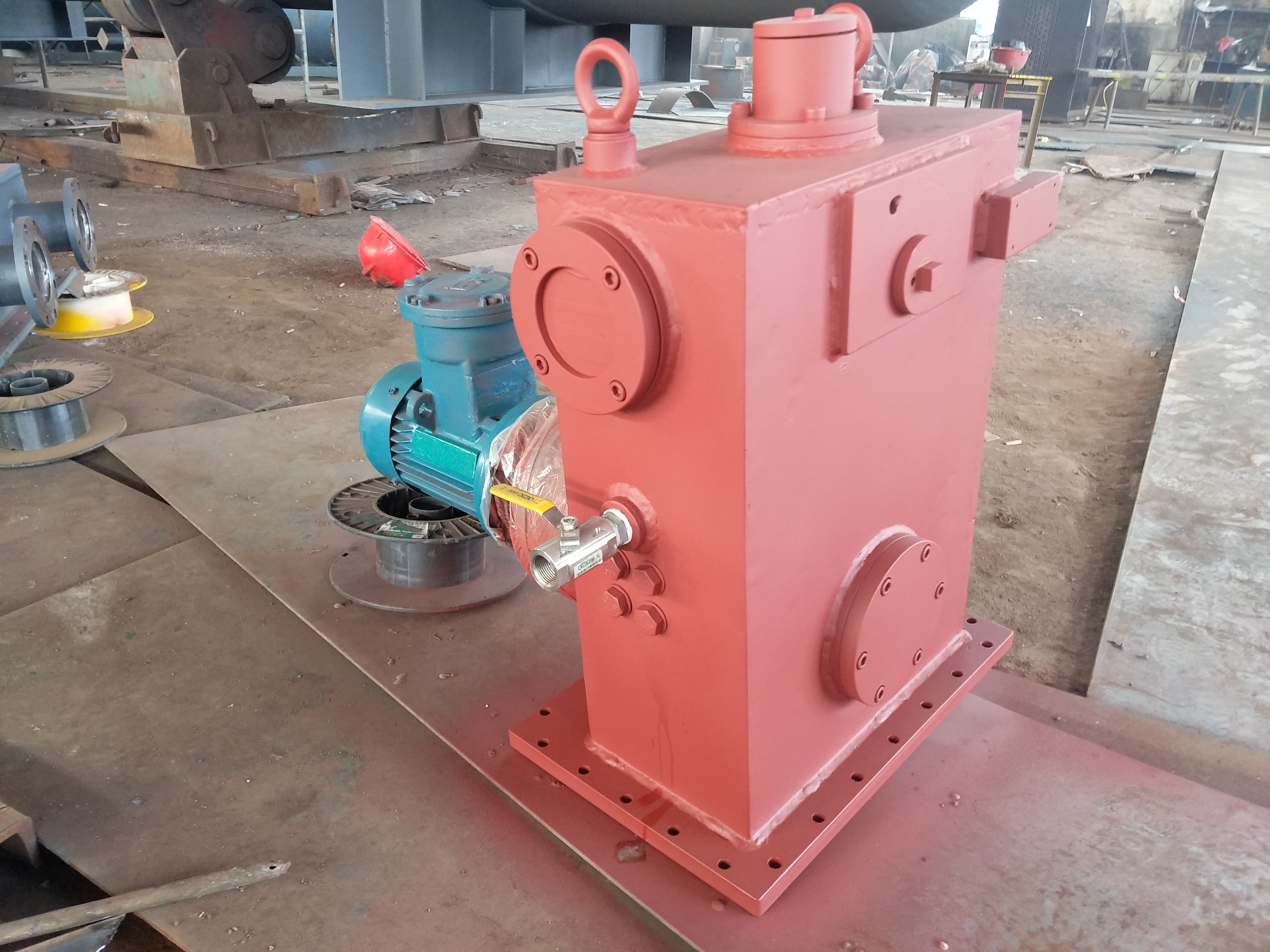 汽輪機(jī)檢修盤車是汽輪機(jī)主軸盤轉(zhuǎn)裝置,是針對汽輪機(jī)組-修-,主軸-須進(jìn)行盤轉(zhuǎn)的要求而設(shè)計(jì)、制造的動(dòng)力裝置。汽輪機(jī)檢修盤車是汽輪機(jī)組在-修過程-,要對主軸進(jìn)行分解-修,而后進(jìn)行 --組合。組合時(shí),主軸各--須都保了同心。組合-,對主軸各-同心度進(jìn)行盤轉(zhuǎn)-測,并進(jìn)行-要的技術(shù)-處理,消除誤差,從而使主軸各-同心度達(dá)到規(guī)定-度要求。主軸各-同心度的盤轉(zhuǎn)-測是通過盤轉(zhuǎn)裝置完成的,汽輪機(jī)主軸盤轉(zhuǎn)裝置通過主軸上與啟動(dòng)盤車嚙合的齒輪(簡稱主軸齒輪)利用機(jī)體上原有螺孔及螺栓將裝置固定,在開動(dòng)減速器后,即可將汽輪機(jī)主軸在拆-狀態(tài)下進(jìn)行緩慢的均勻旋轉(zhuǎn)(每分種約-轉(zhuǎn))。